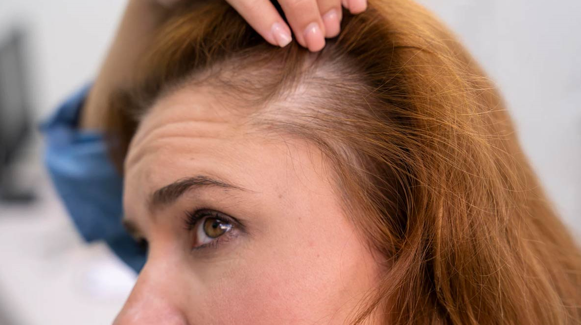 Андрогенетическая алопеция. Это состояние известно как женское облысение. Это распространенная форма выпадения волос, которая протекает по определенной схеме. У женщин это прогрессирующее расширение зоны, где вы разделяете волосы, и поредение волос на макушке и в области головы.