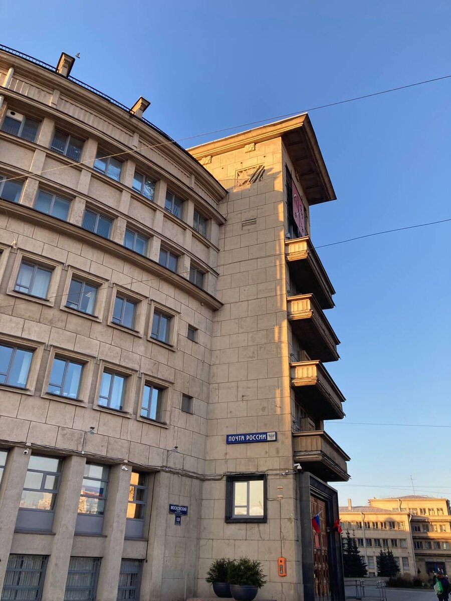 Все ж, есть какое-то свое очарование в стиле позднего конструктивизма. Уже чувствуется близящийся переход к сталинскому ампиру, но, тем не менее, это все ещё конструктивизм. Кстати, внутри не менее впечатляюще, и попасть туда можно совершенно свободно, так как там располагается отделение почты.