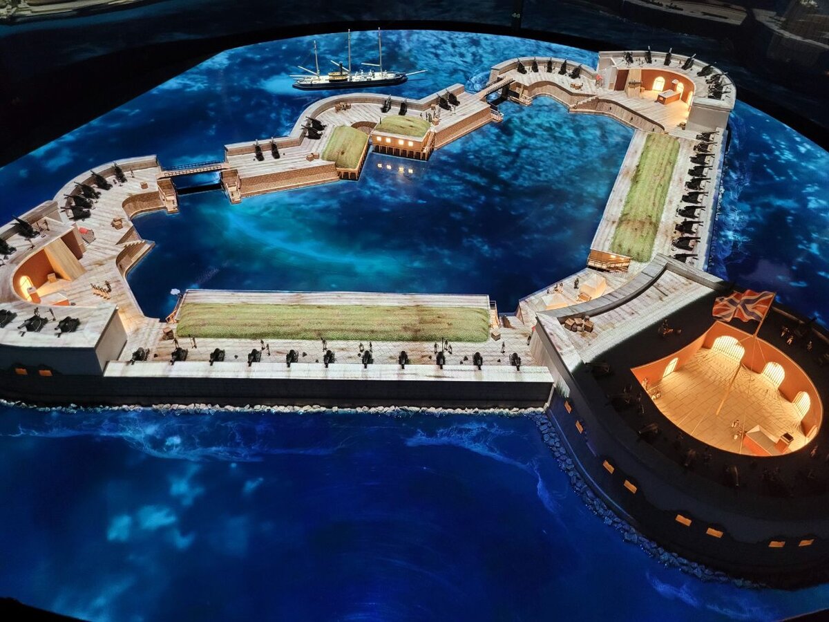 В Кронштадте я уже была один раз, съездив туда на экскурсию из Петербурга. Так как в рамках этой стандартной экскурсии многое из того, что хотелось увидеть, нам не показали, во время январской поездки в Питер, мы выделили один день на поездку в Кронштадт. Отправились туда своим ходом, на машине. Рассказываю, что успели посмотреть. Наш маршрут Кронштадт - небольшой город на берегу Финского залива с богатой историей. В прошлом, это город-крепость, построенный для защиты Петербурга со стороны моря. Поэтому достопримечательности Кронштадта - вовсе не красивые дворцы, а связаны сплошь с военно-морской тематикой. Музей-макет фортов Кронштадта и его окрестности Свою прогулку мы начали с посещения Музея-макета фортов Кронштадта. Там воссозданы старинные морские форты такими, какими они были несколько веков назад. Большая их часть сейчас находится в полуразрушенном состоянии, поэтому оценить былую мощь можно лишь в музее. Посещение музея возможно лишь в составе экскурсии, на которой рассказывае