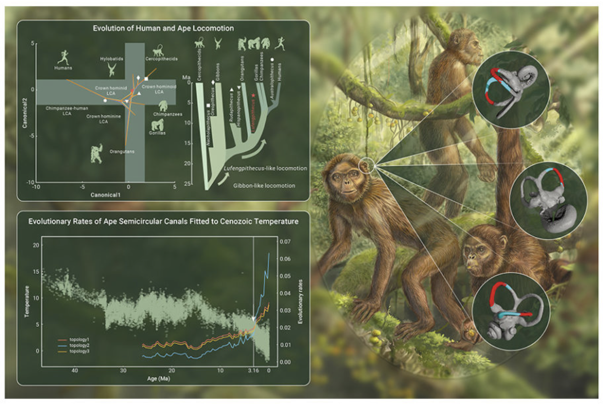 Ученые исследовали размеры и форму полукружных каналов во внутреннем ухе вымершего примата рода Lufengpithecus с помощью 3D-мультимасштабирования и мультимодальной визуализации. Полученные данные они сопоставили с информацией о строении внутреннего уха у других ископаемых и современных обезьян. В результате ученые сделали вывод, что эволюция прямохождения у приматов проходила в три этапа. Исследование опубликовано в журнале The Innovation. Люди и наши ближайшие родственники, человекообразные обезьяны, демонстрируют удивительное разнообразие двигательных способностей: от прямохождения и лазания до карабканья на деревья и хождения на четырех конечностях. Самый уникальный и важный их всех способов перемещения — прямохождение. Однако ученые до сих пор не могут точно сказать, как и почему приматы научились стоять на двух ногах. Большинство исследований сконцентрировано на анализе костей конечностей, плеч, таза и позвоночника у современных и ископаемых обезьян. В рамках новой работы биологи