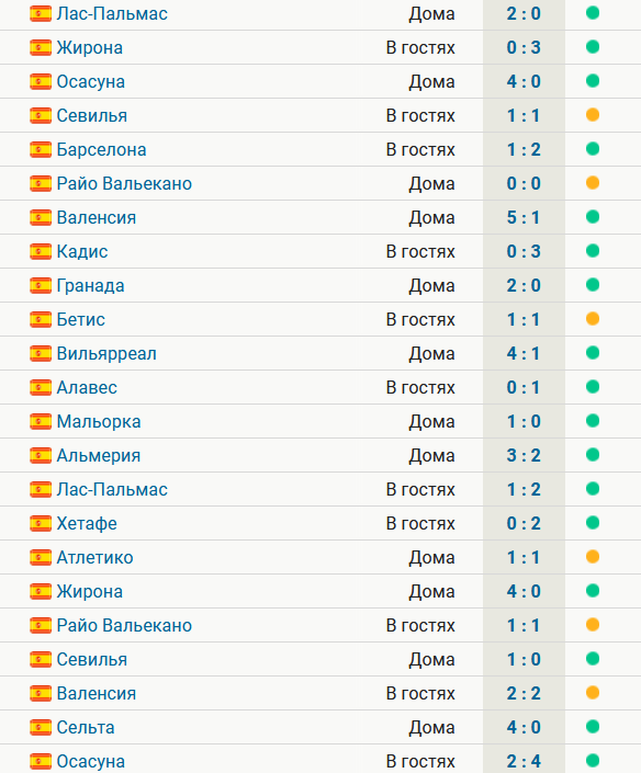 «Реал» 23 матча подряд не проигрывает в Ла Лиге – 17 побед и 6 ничьих с сентября «Реал Мадрид» довел серию без поражений в Ла Лиге до 23 матчей. Лидер чемпионата Испании на выезде обыграл «Осасуну» (4:2) в 29-м туре. После поражения от «Атлетико» (1:3) 24 сентября команда Карло Анчелотти одержала 17 побед и 6 раз сыграла вничью. «Мадрид» набрал 72 очка и занимает 1-е место. «Жирона» (62) и «Барселона» (61) еще не играли в этом туре.