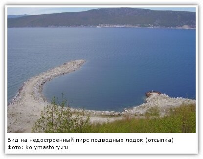 Известно, что при строительстве пирса для атомных подводных лодок (АПЛ), также известного как "отсыпка" или "мол", в его основание был уложен корпус подводной лодки 613-го проекта.