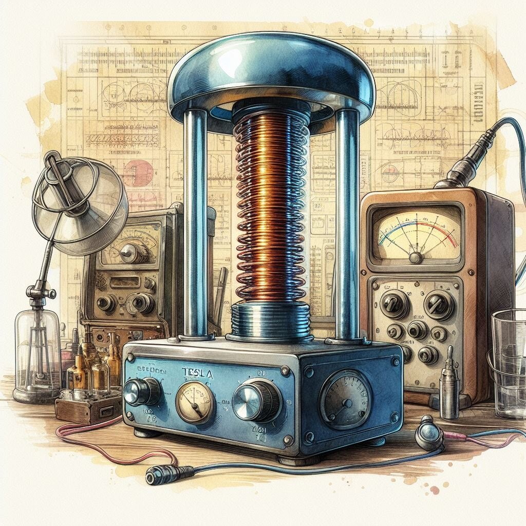 Не теряя ни минуты, я последовал за ним в соседнюю комнату, которая была заставлена разнообразным радиооборудованием: осциллографы, тестеры и генераторы частот уютно устроились среди прочего хлама. На столе, словно венец творения, возвышалась конструкция, напоминающая генератор Теслы. Большая медная катушка с блестящим шаром на вершине издавала низкочастотный гул, а рядом с ней, не подключённая ни к одному источнику питания, лампа накаливания излучала мягкий теплый свет, то ярко вспыхивая, то затихая, как будто дышала.