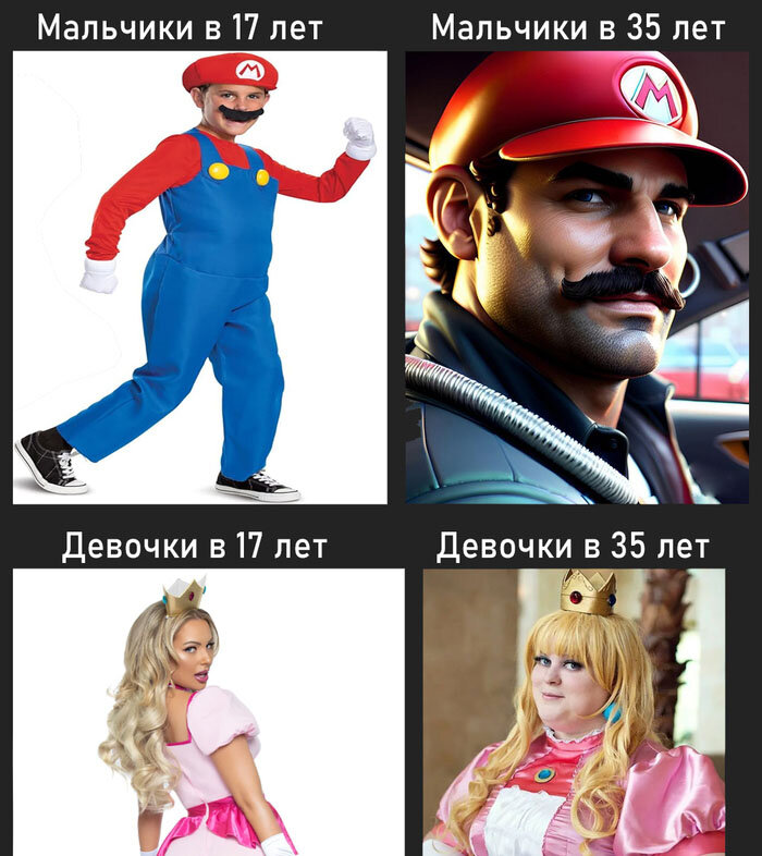 Недавно наткнулась вот на такую картинку, изображающую как выглядят мужчины и женщины в 17 и 35 лет. Понятное дело, что это шутка, но в каждой шутке есть только доля шутки. А все остальное – передаваемые из уст в уста легенды, при помощи которых легко себя оправдать. Смотрите сами.