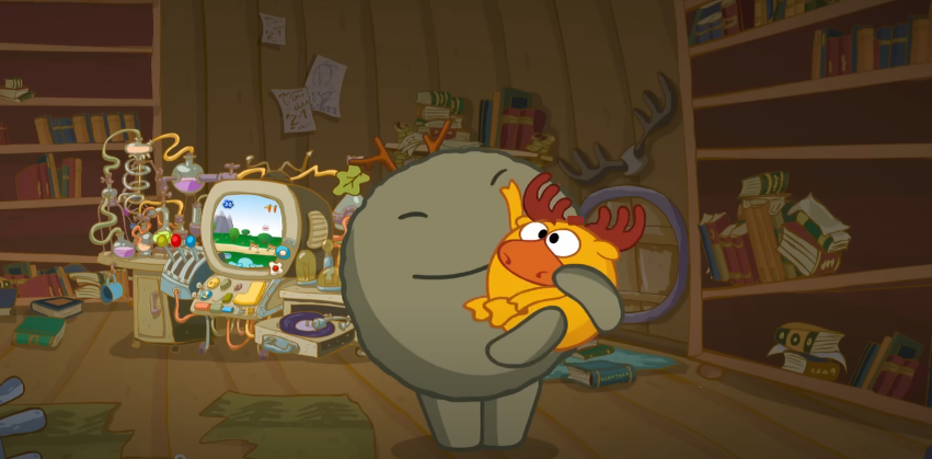 В серии Большая книга снов, когда Лосяш полез на полку, ради книги для Копатыча, то на полке виднеется отсылочка к серии Куда приводят желания-Менделеев, про которого составлена аж целая книга. Ну что, бывает.