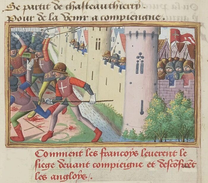 Казнив Жанну'д Арк англичане уверовали, что теперь удача и Бог будут на их стороне. Чтобы закрепить успех, регент Франции герцог Бедфорд отправил свои войска на помощь бургундцам, осаждающим город Компьен, при котором и случилось пленение Орлеанской девы. Однако взять город у объединённого войска так и не получилось. В октябре 1430 года городское ополчение под руководством сподвижника Жанны д'Арк Жана Потона де Сентрайля пошло в наступление: Сначала в ходе яростного штурма французы отбили у англичан один из фортов, а затем приступили к артиллерийскому обстрелу других позиций вражеского войска.
