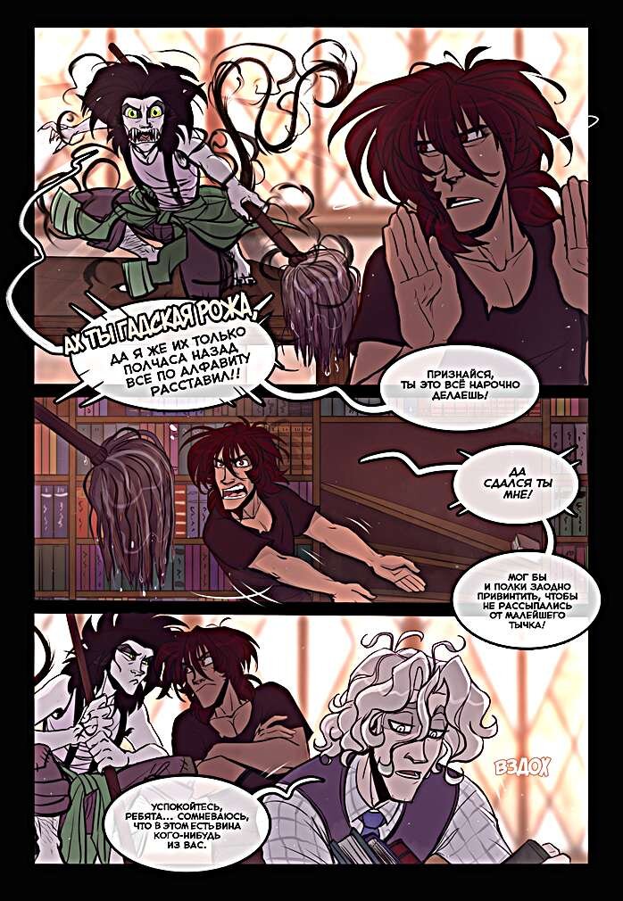 Действие истории разворачивается в Мехбурге, в приюте по воспитанию трудных подростков, в мире, где магия - обыденная часть жизни. Большинство людей - колдуны, есть также звероморфы, которые мирно сосуществуют с ними. Ведь использовать свою магию, чтобы кому - то навредить нельзя. В чём неоднократно приходится убеждаться новенькому, Эйдану Джонсу (Эйджею) - огнетворцу. Но что поделаешь, если в приюте ему то и дело угрожает опасность? "Четыре Колдуна" - это вселенная комиксов, где причудливо соединяются стимпанк и хулиганское фэнтези. Наука и технологии развиваются параллельно с магией. Авторы комикса - российские художники - SickRogue (Больной) и WildRose (Дикий). Вместе, два друга в паблике Sick&Wild рисуют комиксы и фанарты. Возрастное ограничение 13+. Но я всё же проведу небольшую цензуру, ведь сложные подростки порой грязно ругаются... Оригинал можете глянуть в любое время на vk.com и acomics.ru. Прошлые части истории: В прошлых выпусках Эйдан подвергся ночному нападению какого-то