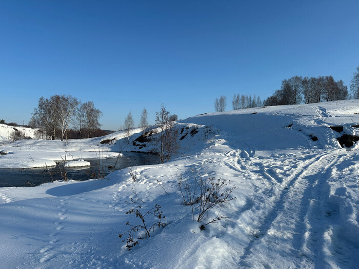 Всем привет. Ух. Зима у нас отступает очень медленно. Ну на мой взгляд. В том году, в это время я уже начал поиски. Холмы же нынче, чуть открываются. Я думаю, не менее недели ждать придется: Хотя на участках, где земля открылась - она оттаяла сантиметров на 15: Это самое тяжелое время для поисковика - вроде и немного осталось, но уже так в нетерпёж: Поглядел речку - там я находил в свое время кусочки керамики: Ну и поехал в деревню - она очень старая и в свое время я там находил очень жирные вещицы. Ладно, догадался до самого низа проехать. Глядь, а там мужики дом разбирают! Оппа! Место знаю - там стоял пятистенок постройки 1860 года! Подошел - разговорился: Начал общаться. Один оказался хозяином. То-се... За жизнь поболтали. Между делом спрашиваю, мол - через недельку -две можно приехать, монеток поискать? Да приезжай. Обговорили - если металл нахожу старинный - ему оставляю. Монеты - себе. Хм... Считаю - очень выгодно вышло. Заодно потестим новый для меня металлоискатель. Всех обнял.