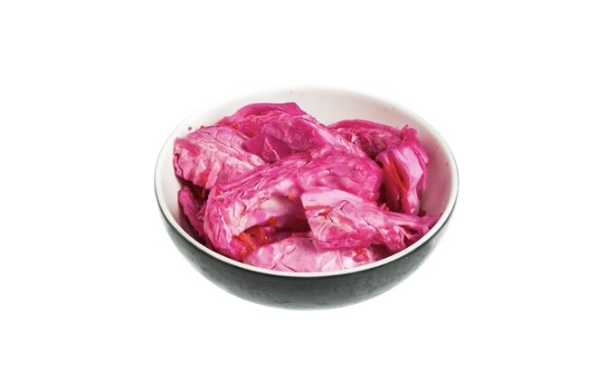 Ингредиенты 6 порций Вода 1 л Сахар 90 г Соль 12 г Уксус 9%-ный 250 мл Белокочанная капуста 1 штука Свекла 1 штука Морковь 1 штука Перец Чили 1 штука Чеснок 1 головка Черный перец горошком 10 штук Инструкция приготовления