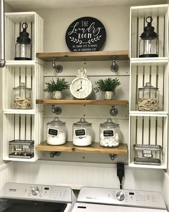 Вот так в ванной комнате разместились полочки из таких ящиков и посмотрите как удачно вписались туда баночки для сыпучих продуктов, правда теперь там лежит стиральный порошок, прищепки и т.д....