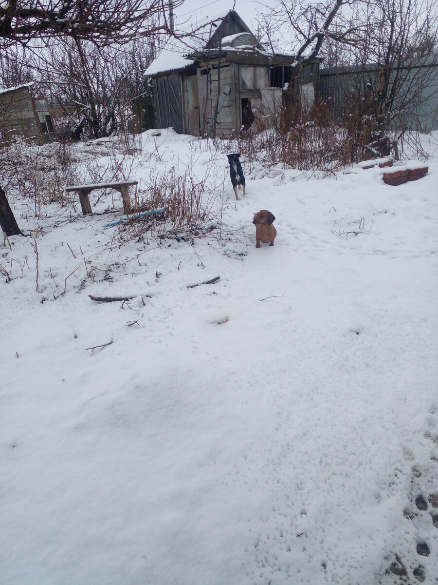 Выборы третий день. Музыка звучит на всю округу. Событие же очень радостное для Россиян. Сходить бы посмотреть, но опасаюсь за Фаню. Рыжая морда очень хитра. Вышла минут на 10 и скорей домой. Она такую погоду не любит. С собой брать не хочу. Грязь, сырость как бы не заболеть ей после такой прогулки. Вышла с ней на улицу. Фанька свои дела делала, а я фотки. Ну, и Серёгины следы проверила, как положено. Фаня проверила, в смысле. Он сегодня очень рано уехал по работе. С утра и ночью снег валил. Это к слову "вы всё врёте" фотки зимние. Какое врёте? Вчера до великой грязи растаяло. Сегодня опять завалило, но уже и таять начало. Ужасная погода. Мужики, ожидая рыбалку, психуют. Лёд стоит и стоит, а время идёт. Нет рыбы-нет денег. Печаль. Утром бегал антенну крутил. От снега сигнал пропадал. Антенна чудесная у нас и приставка. Там 10 каналов всего ловит, ну, хоть. Наверняка, есть у вас вопрос, а почему мне одной не сходить на выборы посмотреть? Я не могу собаку дома оставить. Она умеет откр