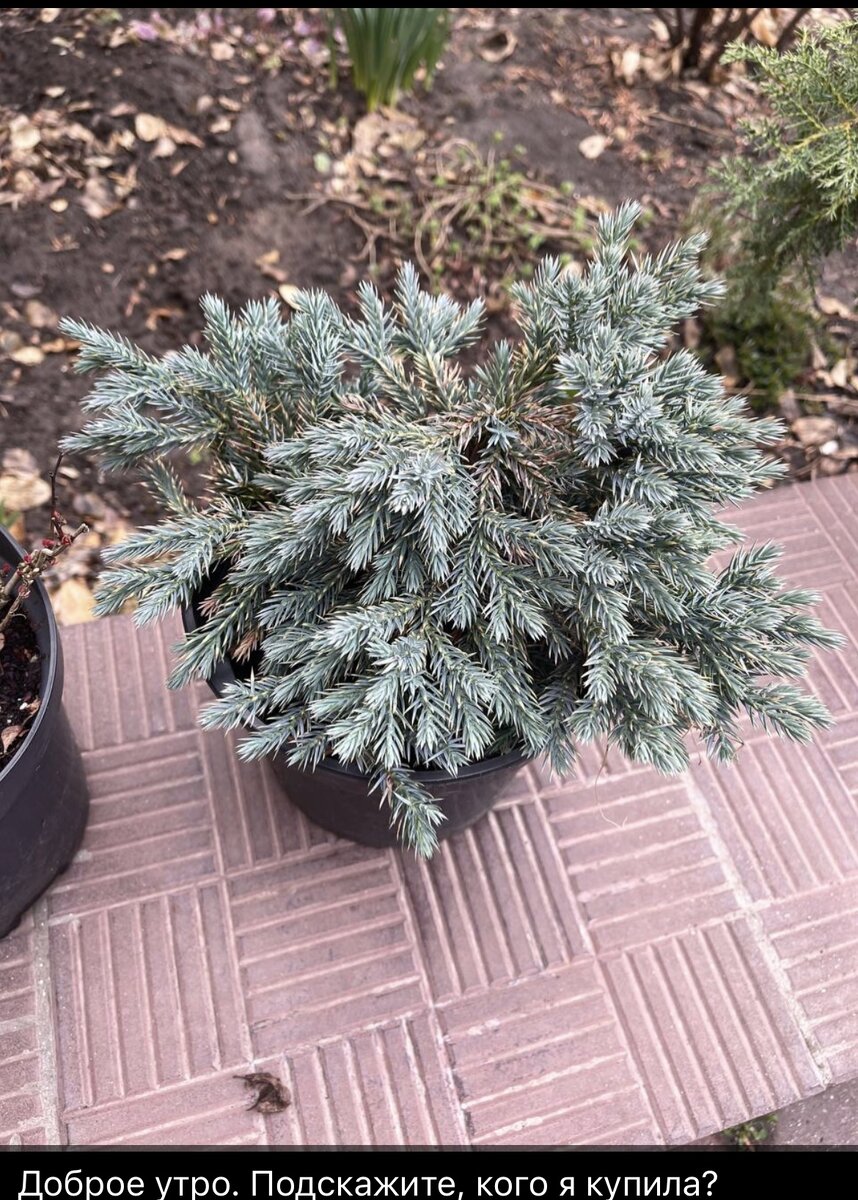 Добрый день, друзья! Кто такой на фото? У меня спрашивают, что купила? Исходя из моего немалого опыта и на первый взгляд, я определила это как можжевельник чешуйчатый Blue Star. Определить сорт хвойных растений намного проще, чем роз. Но и можжевельников на сегодняшний день очень большое количество сортов. Можжевельник чешуйчатый Blue Star (БлюСтар).Растение высотой от 0,5 до 1,5 м имеет достаточно жёсткий ствол с корой серо-бурого цвета. Хвоя колючая, короткая. Иголки снизу тёмно-зелёные, а сверху кажутся серебристо-голубые. Относится к медленнорастущим кустарникам, прирост составляет около 8 см в год. Я не хочу ошибиться, хотя кажется, что уверена на 99%. Но бывает так, что одна иголочка имеет определённые изгибы и это уже равно другой сорт. Как вы думаете, на кого похож этот можжевельник ? Делитесь своим мнением. ☔️А у нас сегодня с утра идёт дождь и обещают такую погоду на целый день. А были планы по посадкам и подсадкам, съемка видео маленького, наверно надо