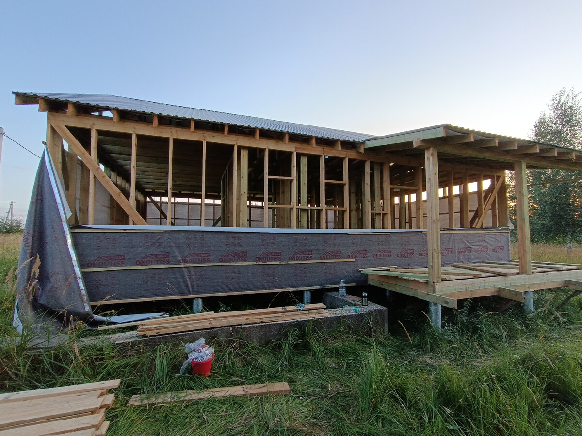 Итак, после того как нам построили каркас прошло некоторое время , наконец-то руки дошли до обшивки стен.