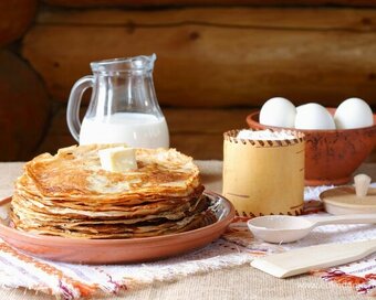 Масленица: классический рецепт приготовления блинов на 1 литр молока Ингредиенты: мука пшеничная — 300–320 г (2 стакана по 250 мл) молоко 3,2%-й жирности — 1 л масло растительное рафинированное — 40 мл яйца куриные — 4 шт. сахар — 45–50 г соль — 5 г Рекомендация: Для приготовления классических и любых других блинчиков используйте только свежие, качественные продукты. Это важно, если вы хотите получить хороший результат. Масло, молоко и яйца должны быть комнатной температуры. Муку выбирайте пшеничную высшего сорта — в ней больше всего клейковины, благодаря которой тесто быстро приобретает нужную консистенцию. Также муку обязательно нужно просеять. Это насытит ее кислородом, устранит твердые частицы и предотвратит появление комочков при замешивании теста. Способ приготовления: В глубокую миску разбейте яйца. Добавьте к ним указанное количество соли и сахара. Интенсивно взбейте венчиком. Чтобы тесто без лишних усилий получилось однородным, разделите 1 литр молока, который вы приготовили д
