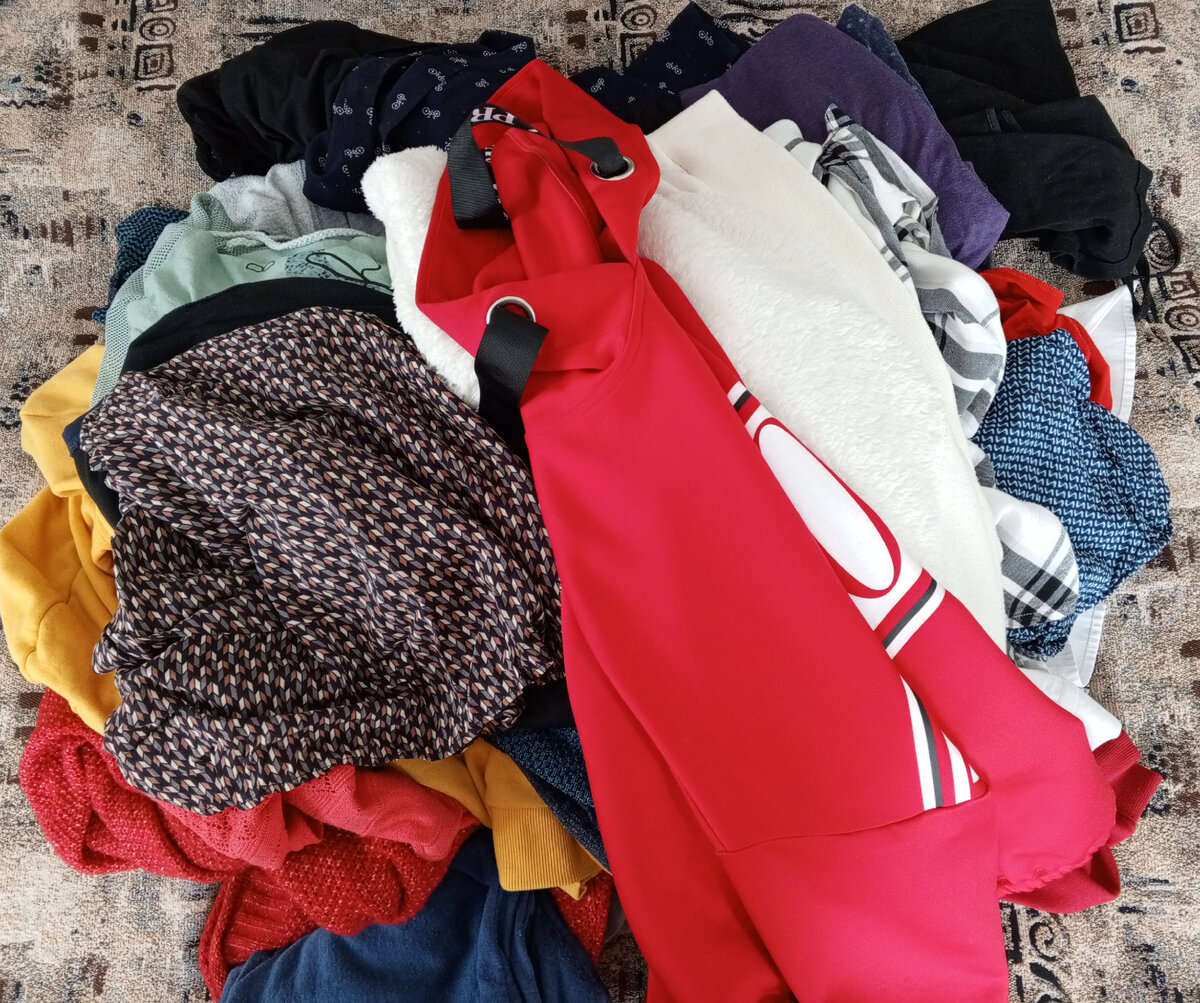 Продолжаю свое расхламление по методу Мари Кондо. Я уже разобрала категории: - Книги - Сумки - Косметика - Парфюм На очереди самая сложная и объемная категория - Одежда. Последую совету автора и разделю одежду на типы: Начала по порядку - Верхние части одежды. Собрала все, что сюда подходит в одном месте. Затем разделила их на три стопки: 🔹Летние топы 🔹Рубашки, блузы 🔹Свитера, водолазки Затем поочередно брала вещь, внимательно ее разглядывала и задавала вопрос "Для чего ты мне?" Если ответ не находится, значит вещь и не нужна. Каждый предмет должен чему-то служить. Например, этот свитшот ношу под куртки, пальто. Покупала давно и носила часто. Теплый, но при этом не объёмный. Не смотря на многочисленные стирки не растянулся, не выцвел и не повредился рисунок. Обожаю вещи хорошего качества и расстаюсь с неохотой. Или эта рубашка. Моя выручалочка. Хорошо смотрится и с джинсами и с юбками. Когда не знаю, что надеть - выбираю ее. В любой ситуации выгляжу уместно. Вообще рубашки сильно
