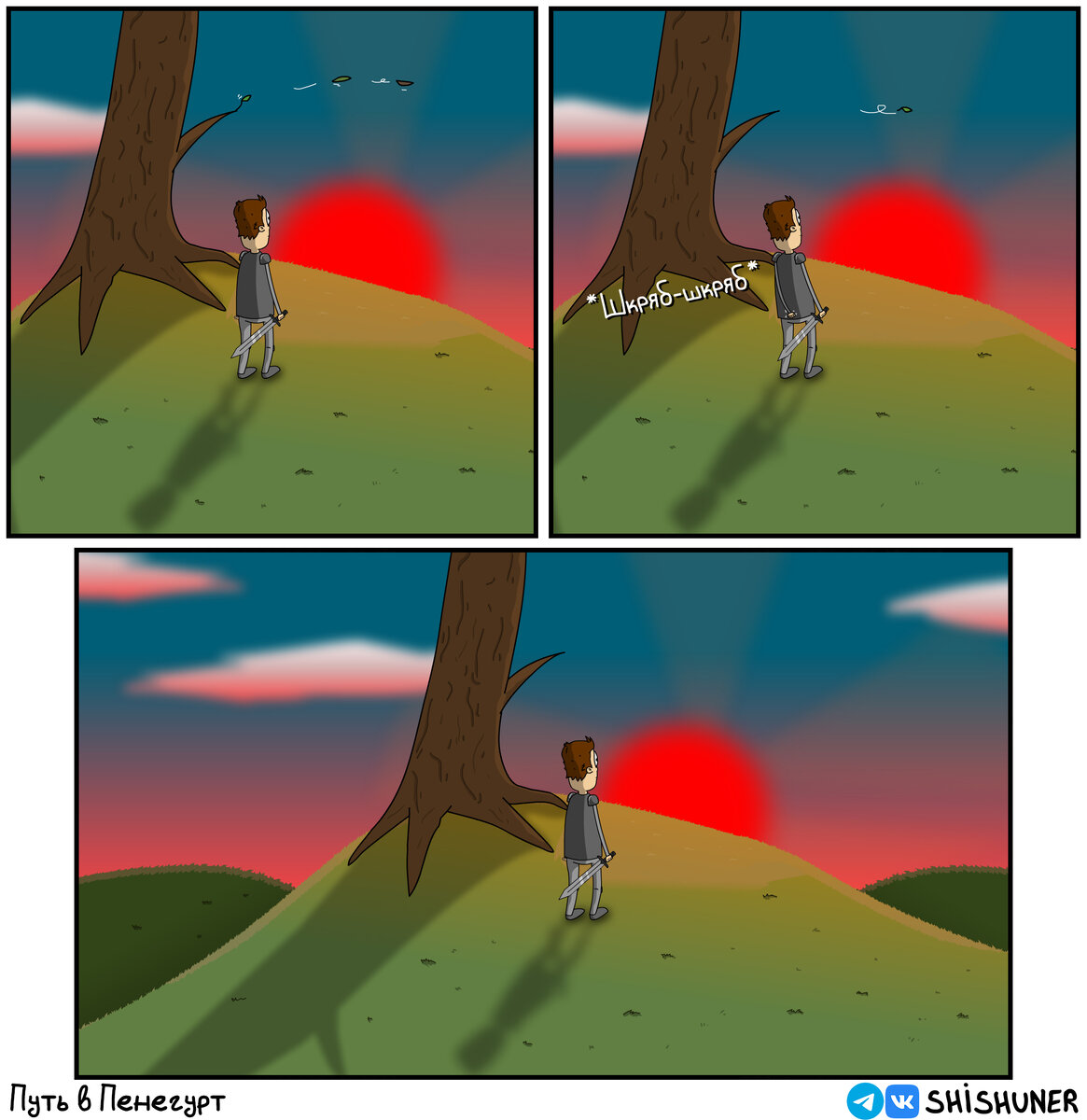 Сегодня в статье, как и в комиксе, о котором она рассказывает, будет минимум текста. Сэр Шишунер - странствующий рыцарь. И как любому путешественнику, ему тоже требуется отдых... Спасибо за внимание и до новых встреч на просторах Дзена! Ваш Шишунер. Группа в ВК: https://vk.com/shishuner Телеграм: https://t.me/shishuner Статьи по теме: