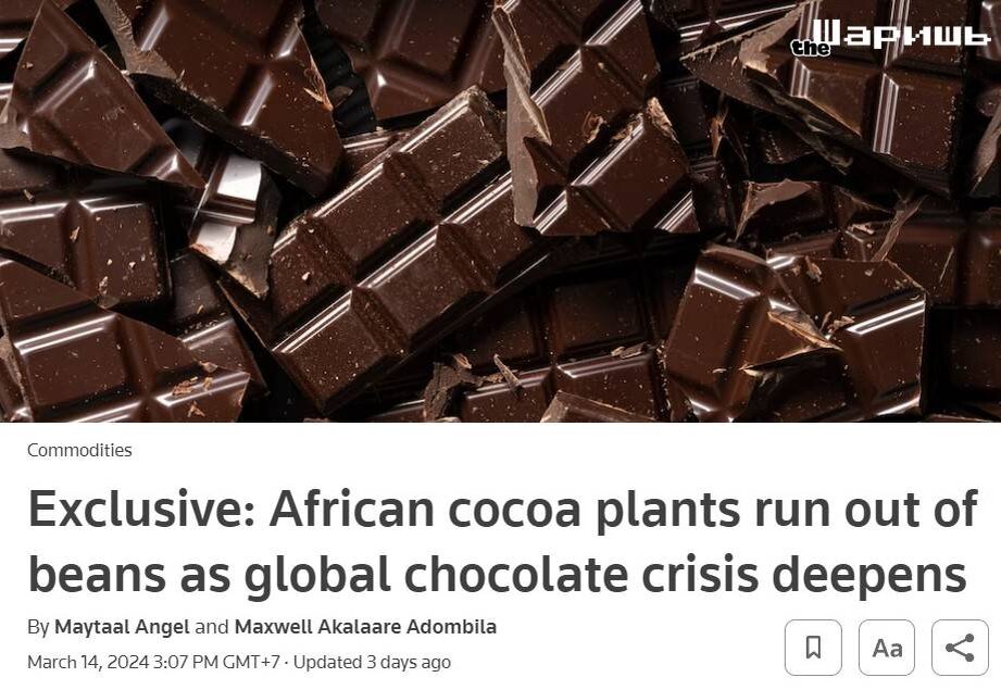 Отмечается, что этот год уже третий подряд, когда какао-бобы попадают в разряд дефицитных. В текущем сезоне объём производства упадёт на 11% Telegram: Мамаев | theШаришь ВК: Дмитрий Мамаев