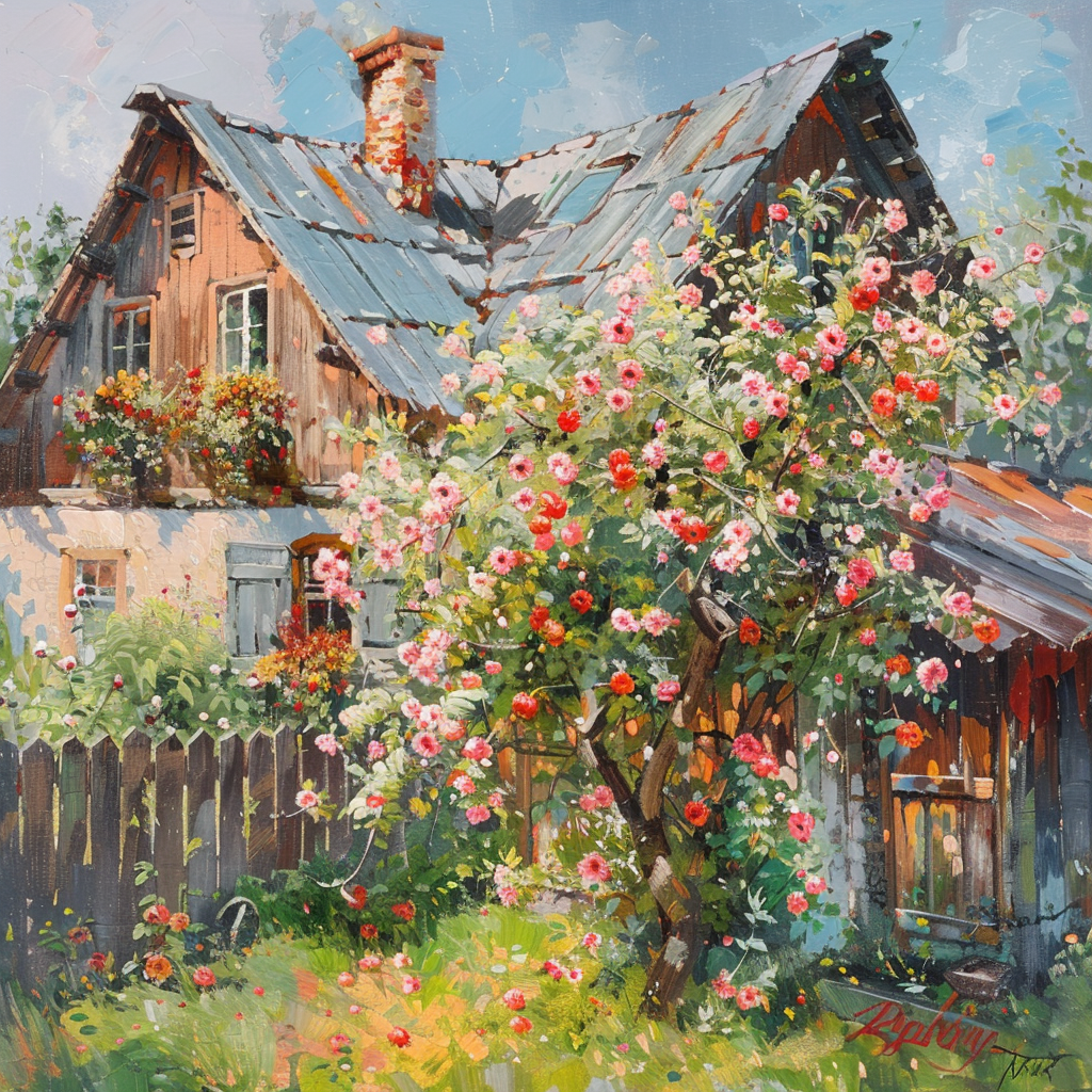 Дома в деревне были деревянные, с крутыми крышами и высокими трубами. Окна украшали резные наличники, а в садах цвели яблони и вишни, покрытые румяными плодами. Утром, когда только начинал рассеиваться туман, сельчане отправлялись на поле, в лес или в свои огороды. Здесь каждый знал своего соседа, и люди жили дружно, поддерживая друг друга в радостях и бедах.