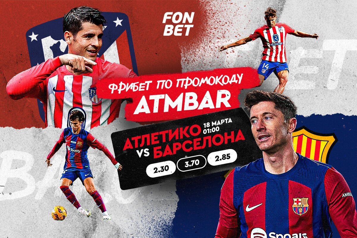 На этой неделе «Атлетико» и «Барселона» успешно выступили в Лиге чемпионов и вышли в 1/4 финала. Чем завершится очное противостояние команд в центральном матче 29-го тура Ла Лиги? Где смотреть «Атлетико» – «Барселона» онлайн в Казахстане Встреча «Атлетико» с «Барселоной» начнется в Мадриде на стадионе «Цивитас Метрополитано» в ночь с воскресенья на понедельник, 18 марта, в 01:00. Посмотреть эту игру и все матчи Ла Лиги можно в на сайте и в приложении букмекерской компании FONBET. Для этого достаточно зарегистрироваться по этой ссылке и пополнить игровой счет. К тому же специально к матчу «Атлетико» – «Барселона» FONBET подготовил акцию. Для участия в ней введите промокод ATMBAR в разделе «бонусы и акции» на сайте или в приложении и сделайте ставку на любую встречу Ла Лиги от 3000 ₸ с коэффициентом 2.00 и выше. После расчета ставки вы получите фрибет 2000 ₸. Кроме того, букмекер с самыми быстрыми выплатами в Казахстане дарит новым клиентам бонус до 200 000 тенге на первое пополнение сче