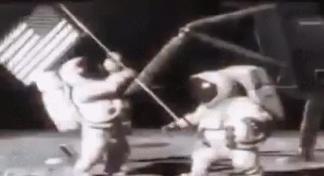 Посмотрите внимательно и призадумайтесь над психологией тех, кто так весело прыгал в полном вакууме и при полном отсутствии какой-либо помощи в случае травмы или разгерметизации скафандра... Уважаемые читатели, Вы действительно верите в чепуху, верите, что эти кадры снимались на Луне?