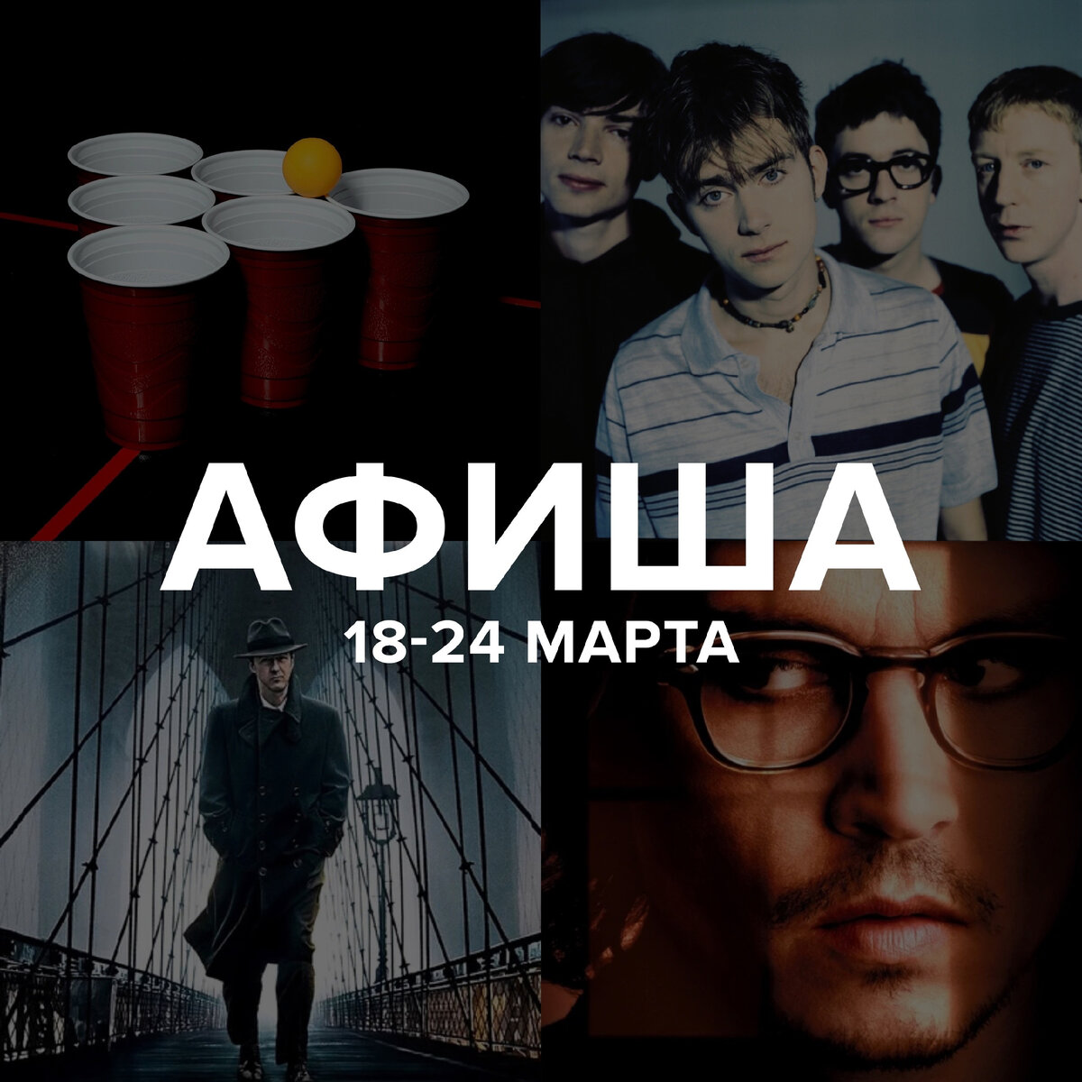 Регистрация: +7(938)468-64-26 19 марта. Приглашаем на трансляцию концерта группы Blur «The Singles Night» на Webley Arena 1999 года. Начало в 20:00, вход свободный 20 марта. Киновечер. Смотрим фильм «Сиротский Бруклин». Ретро нуар детектив от Эдварда Нортона. Нью-Йорк 50 годов, ноябрь, ночь, клубы Гарлема, трущобы Бруклина, отовсюду играет джаз!