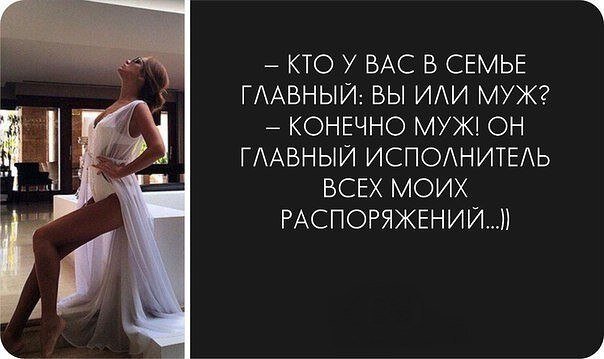 Очередной раз с гордостью и умилением читаю, что все в этим мире зависит от женщин, потому что об этом в СК написано. Чёрным по белому. 3-5 феминистками. О как! Не знала, что у нас в правительстве всего или аж целых 5 феминисток работает! Но об этом мы уже писали, что граждане не только не в курсе кто писал и принимал СК, но и что там написано. В браке абсолютно всё зависит от воли женщины. Это закреплено в СК РФ. И даже самое распрекрасное поведение мужчины не гарантирует, что эта женская воля будет по отношению к нему доброй. Я лично очень сильно сомневаюсь, что эти 27% мужчин осознают уровень их безумства. Даже те, кто очень сознательно подходит к выбору партнерши и не считает брак безумством, тоже далеко не в полной мере понимает ситуацию с браком. 27%-это те мужчины, которые живут в браке и не развелись. Нравится им там. В отличие от тех счастливцев, кого выбросили на теплотрассу. <Ведь прямая обязанность женщины прислуживать мужчине> Совсем нет! Прямая обязанность женщины бы