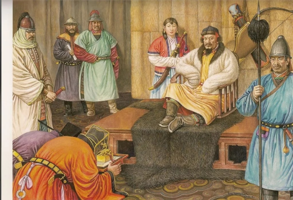 Война за запрещение действий Хорезмского государства силой оружия, на которую выехал Чингисхан в Среднюю Азию, мобилизовав двадцать туменов войск, была в самом разгаре, когда из внутренних земель Китая прибыли два посла мира. Один из них был из Южной Сунской династии. Этот отшельник по имени Чэнчун представлял религию загробной жизни Бумба, или монашескую веру. Другой, по прозвищу Дохлый Зуванда, был заместителем министра Министерства церемоний Золотой династии. Их принял Чингисхан на южном фронте. Начало и окончание этих двух интересных встреч приведены ниже.