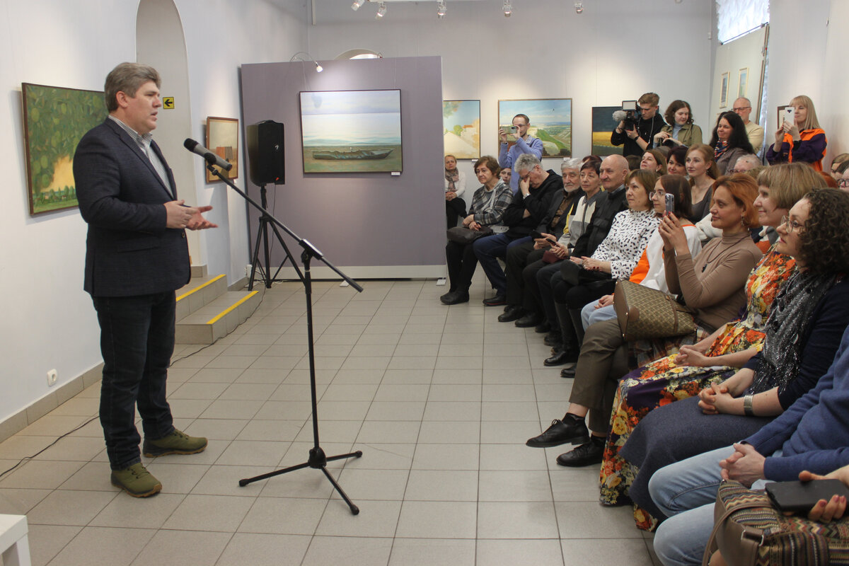 15 марта в нашем музее было привычно людно и тепло от улыбок, дружеских объятий и добрых пожеланий. Один из ведущих художников нашего городского округа Альберт Солтанов принимал поздравления с открытием своей персональной выставки, которая называется "В пути". Название, на первый взгляд, странное, вроде бы и не выставка транспорта, но для любого творческого человека название абсолютно логично, ведь все художники, если они хотят развиваться в своей творческой деятельности, никогда не останавливаются на достигнутом, вечно пребывая в движении. Слово "путь" Солтанов трактует прежде всего философски, метафизически, это не столько путешествие в пространстве, сколько путь творческий, жизненный, наполненный поиском и раскрытием смыслов, попытками через свое искусство раскрыть свою позицию, быть верным миссии художника и гражданина. Каждое полотно наполнено этими размышлениями, даже если сюжет кажется простым, например, детская площадка на обочине, придорожное кафе в ночи, пустая автобусная ост
