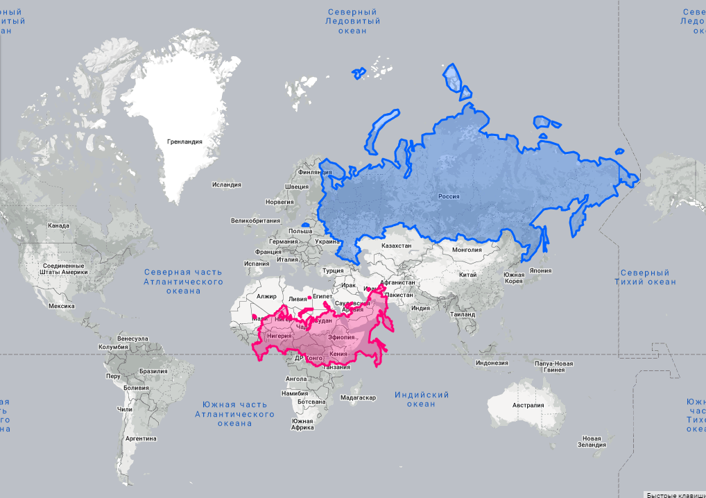 Глядя на современную политическую карту мира, всегда удивляешься насколько же наша страна огромная. Иногда еще обращаешь внимание на остров Гренландия, которая на картах размером с Австралию. Так как мы с самого детства знаем, что наша страна самая огромная, то не задумываемся о том, что карта вводит нас в большое заблуждение.