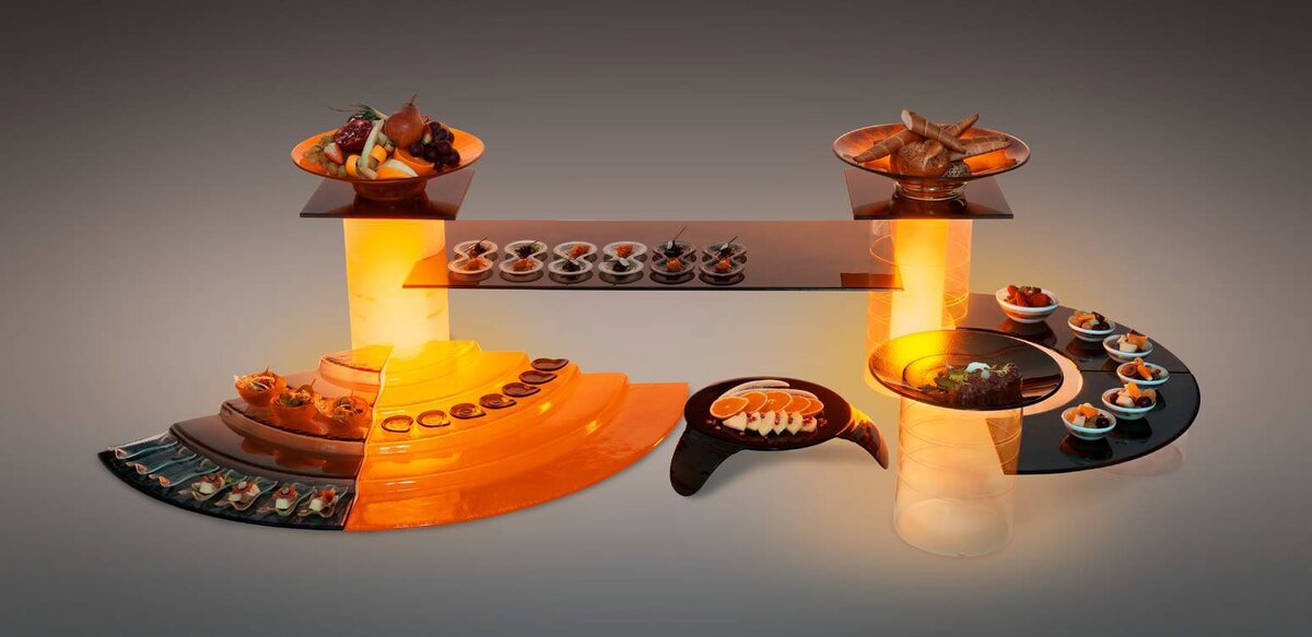 Стеклянная посуда, даже если она цветная, прозрачна и пропускает свет. Это позволяет шеф-повару играть с блюдами в ресторане, как художнику со светом. Цвет может отражать идеи и стиль оформления ресторана, поддерживать идеи завтраков, вдохновлять и заряжать энергией гостей или преломляться и мерцать на поверхности блюд в вечернее время.