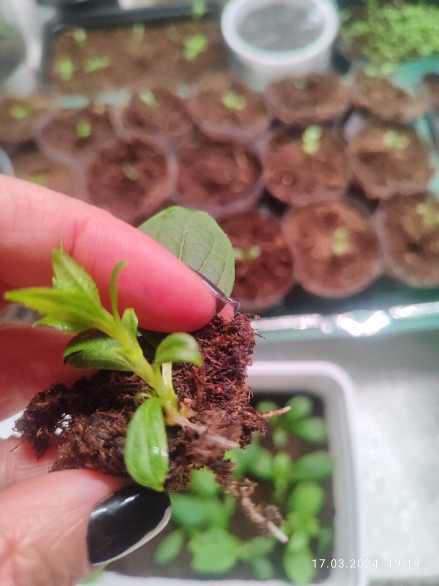 В начале марта укореняла метельчатую гортензию Фантом почкой, так называемый метод зеленого черенкования. Прошло 2 недели, докладываю о результате: По общему виду никто не помер, корни есть даже у совсем малышек, скоро надо будет пересадить по отдельным стаканчикам. А пока по-прежнему держу в тепличных условиях, в данном случае в пакете. Можно и контейнер с неплотной крышкой, но они у меня большие, и на такую роскошь уже нет места)) По поводу укоренения одревесневшей частью черенка - тут все плохо. Корней нет ни у тех, что в грунте, ни у тех что в перлите, и судя по всему не будет. Стоят в замершем состоянии, много выбросила, потому как засохли. Но я не сдаюсь!!! Притащила с дачи новых "подопытных кроликов"😂 За неделю они проснулись и уже появились зеленые почки: Куплю теперь вермикулит, часть черенков оставлю в воде, часть отселю в вермикулит - будем посмотреть!) Кстати вычитала, что лучше воду использовать покупную - купим👌 Одно зна