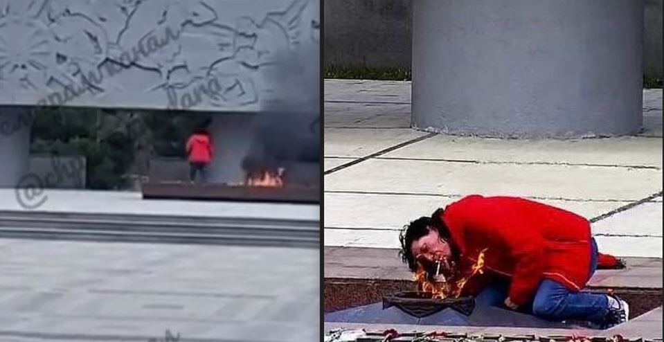 Пьяная женщина в Краснодаре швырнула венок в Вечный огонь и прикурила сигарету