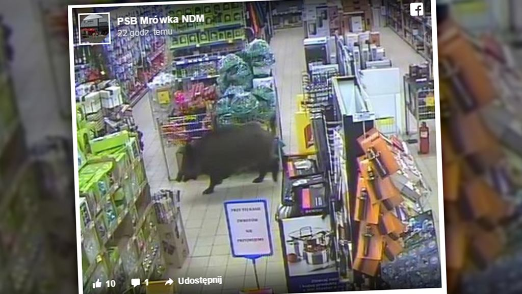 Новость! Среди бела дня в «Мровку» ворвался кабан. Нежеланный гость протаранил дверь и пробежал между полками