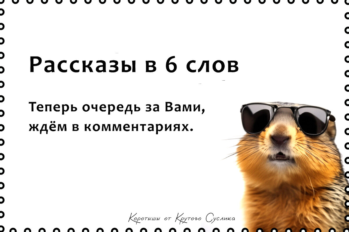 Разозлил. Прибралась. Накрутила. Принëс любимые цветы. Раз-два-три-четыре-пять... Машина. Беременность. Токсикоз. Бессонница. Схватки. Боль. Папа! Обнимал меня, представлял другую в зеркале. Не готова. Беременность. Роды. Мамуля, привет! Взял свадебный кредит, оказалось, на похороны. Вчера понял песню «Пусть мама услышит». Уехал заработать денег. Папа не вернётся. Подарил духи. У подруги такие же. Звонок от бабушки. Похоронили год назад. В машине мужа помада. Не моя. Я сделала проект. Подписал друг. Бывший. Мечтала купить свадебное платье. Купила подруга. Долгожданная встреча. Заветная мечта. Я женюсь. Депрессия. Лечение. Я впервые вижу рассвет. Немой ребёнок. Потерял брата. Он заговорил. Будем рады подписке!