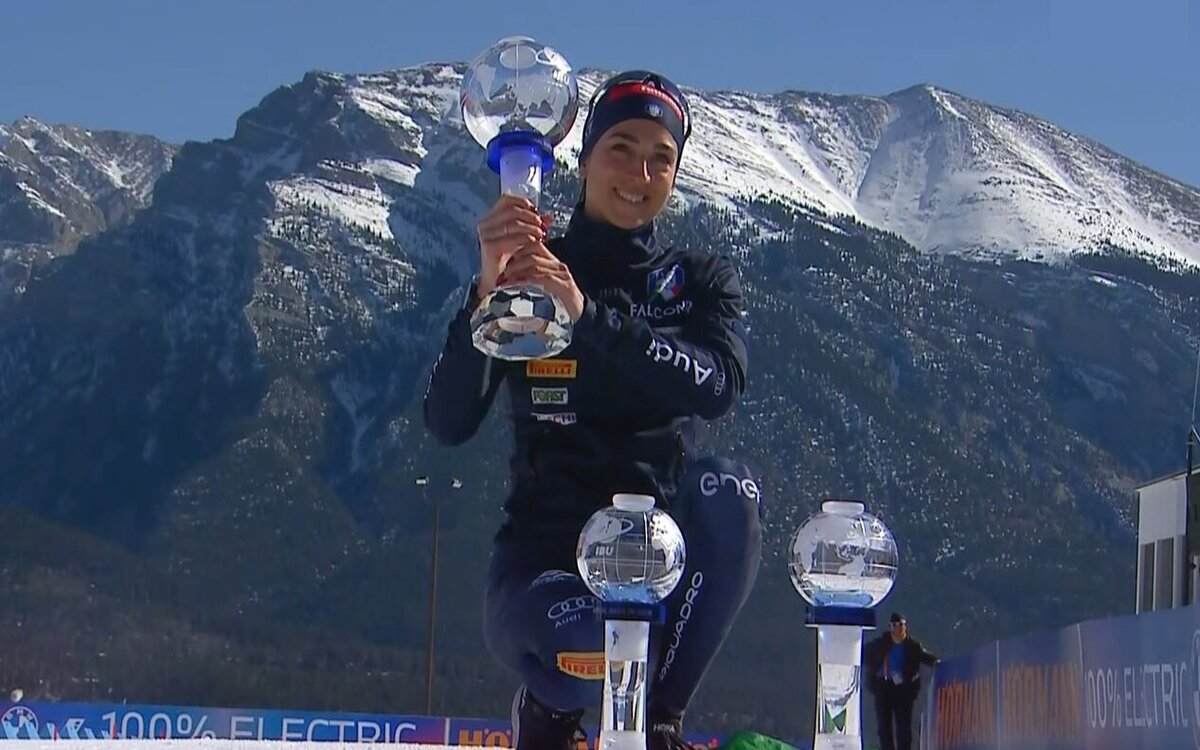 Итальянка Лиза Виттоцци выиграла Кубок мира по биатлону. Последнюю гонку сезона она завершила в третьем десятке, но все равно получилось красиво: финиш с флагом и долгие объятия с главной конкуренткой. Накануне масс-старта в Кэнморе у Виттоцци была всего одна соперница – Ингрид Тандревольд. Правда, норвежка только что упустила лидерство, да и шансы на тотал сохраняла лишь математические. Чтобы опередить Лизу ей нужно было выиграть гонку или хотя бы стать второй, Виттоцци же в таком случае должна была опуститься ниже 11-го или ниже 24-го места соответственно. Тандревольд вышла заряженная на борьбу – этого настроя так не хватало в предыдущие два дня, когда она и попрощалась с желтой майкой. Но немного не получилось на стрельбе: три промаха и лишь 8-е место. Виттоцци, которая накануне провела образцовое преследование, все-таки занервничала. На первом же рубеже промахнулась дважды, а всего допустила 5 ошибок. Но это не помешало выиграть Кубок мира – запаса хватило. Ингрид в итоге пропустил