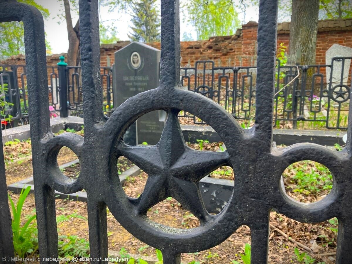 То, что это захоронения советского периода сомнений не было. Массивная литая из чугуна ограда была украшена пятиконечными звездами. Внутри в один ряд располагалось несколько могил.