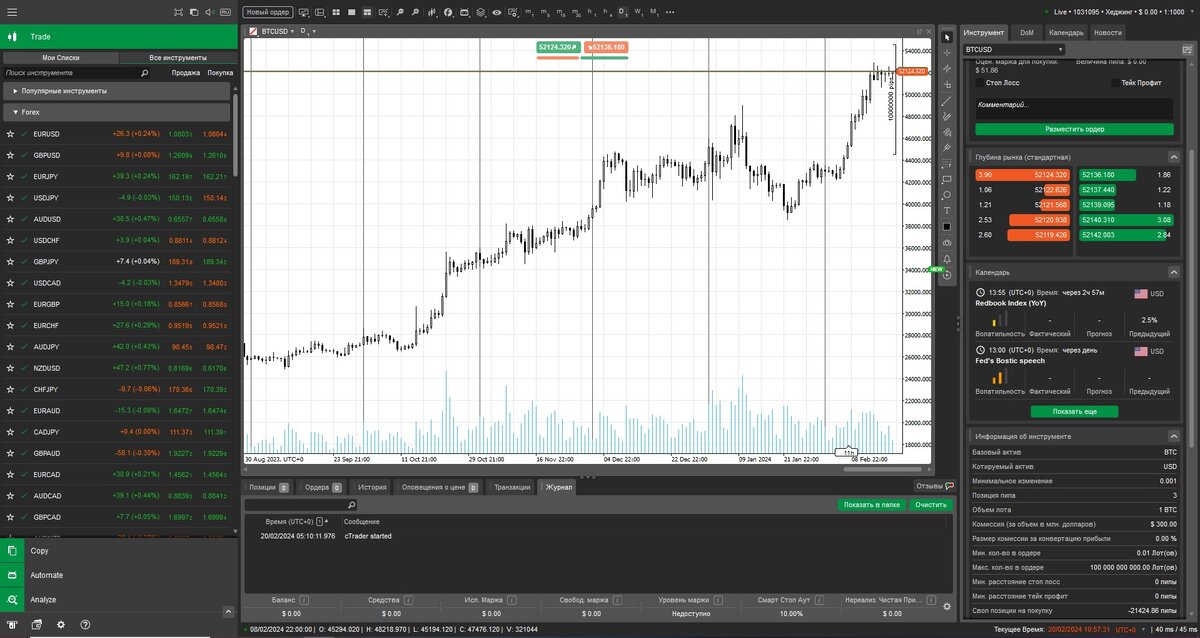 Пользовательский интерфейс cTrader разработан, чтобы сделать торговлю простой и эффективной, поэтому вы можете получить доступ ко всем необходимым инструментам и опциям с главной страницы приложения.