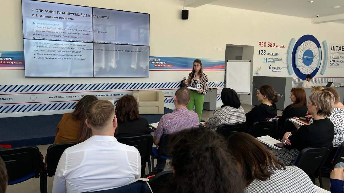 В Штаб общественной поддержки в Астрахани прошёл семинар «Основы составления бизнес-плана для получения государственной поддержки на основании социального контракта для реализации бизнеса», организованный центром «Мой бизнес». Спикером выступила индивидуальный предприниматель, бизнес-тренер Экспертного сообщества «Страктика» Юлия Заболотнова. Отметим, что бизнес-план является важным инструментом для успешного ведения бизнеса. С его помощью предприниматели могут определять цели и задачи бизнеса, понять окупаемость и объём рынка для продукта или услуги, заранее просчитать риски. Участники семинара получили знания и навыки, которые помогут им в достижении своих целей: разобрались в структуре бизнес-плана и поняли, как каждый раздел должен быть разработан и представлен, а также узнали о господдержке по нацпроекту «Малое и среднее предпринимательство».