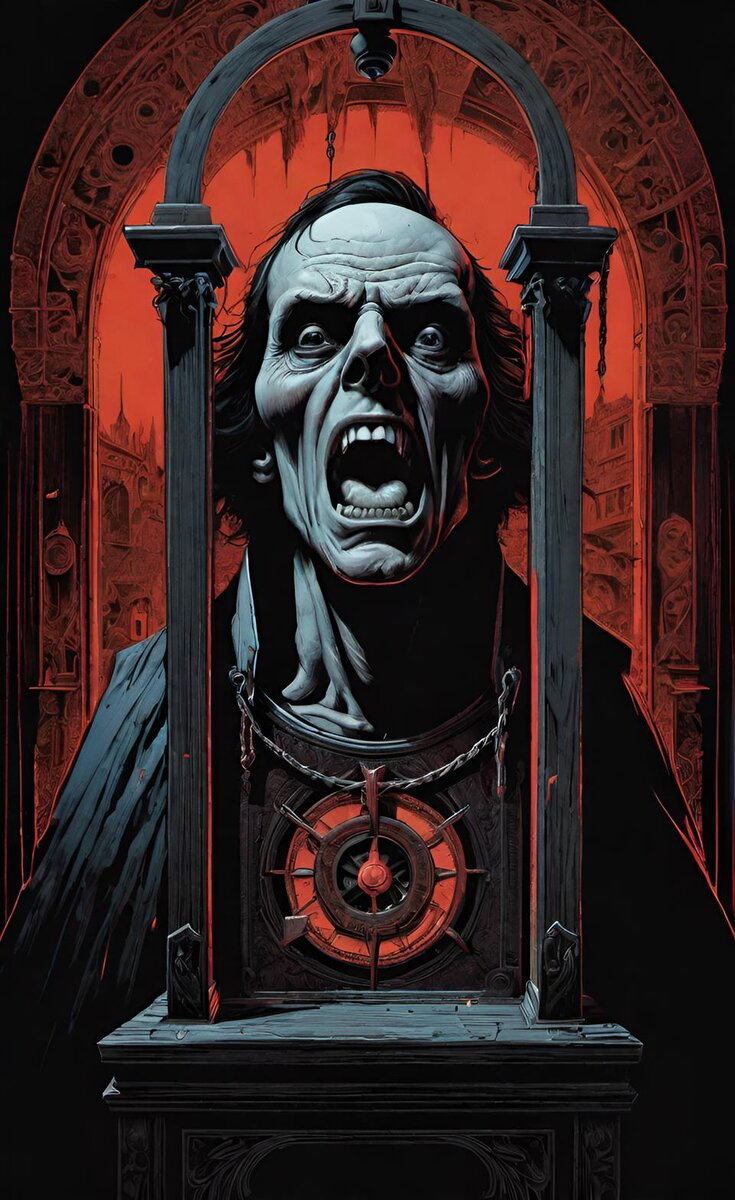 Она сияла в лучах жаркого полуденного солнца, будто нарочито привлекая к себе внимание. Высокая, красивая и в некотором роде даже идеальная. Она напомнила Шарлю любимую игрушку, которую мальчик звал «Ворота». Она представляла собой несколько деревянных арок, которые можно было крутить вокруг своей оси и переставлять, создавая разные причудливые фигурки. Орудие смерти очень походило на «Ворота», и Шарль залюбовался красивой конструкцией.