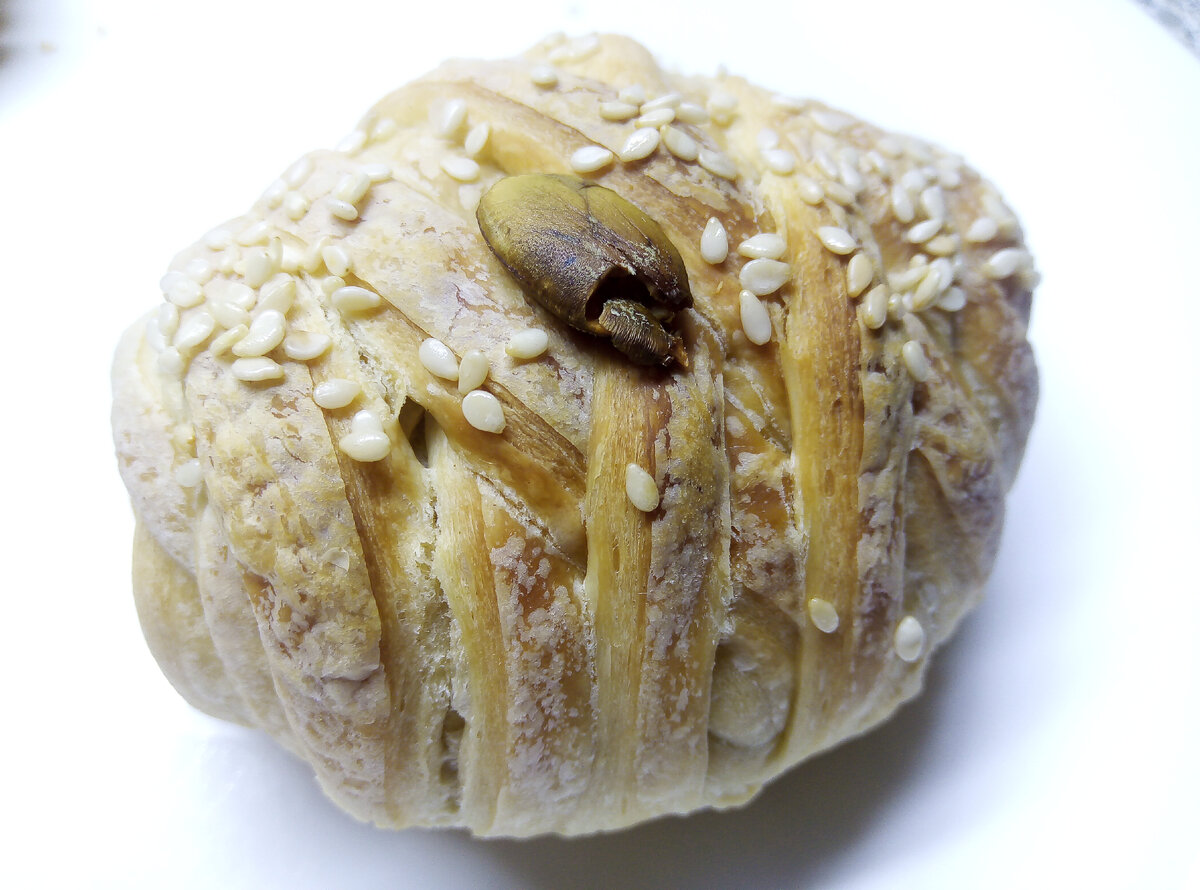 Вам понадобится : 4 шпикачки 1 пластик теста слоёного дрожжевого. Шпикачки Орские очистьте Возьмите пластик слоёного теста Разделите на 4 части Возьмите 1 часть Немного раскатайте Положите шпикачки на тесто как показано на фото Сделайте надрезы как показано на фото Сделайте плетение как показано на фото Сделайте плетения как показано на фото Заплетите полностью шпикачки Положите шпикачки на лист смазанный маслом Возьмите семечко тыквы Я семечки покупаю в магазине светофор Очистите и положите на шпикачки в слойке - так как показано на фото Посыпьте кунжутом - на слегка намазанную маслом поверхность , кунжут я тоже покупаю в магазине светофор. Отличное качество. Посмотрите Поставьте выпекать на 45 минут 190 градусах. Готовые шпикачки сложите на тарелочку Посмотрите как вкусно Желаю вам приятного аппетита. Просим вас принять участие в голосовании за лучший рецепт. Подпишитесь. Ваш голос важен для нас. Напишите комментарий. Поделитесь рецептом с друзьями и подписчика