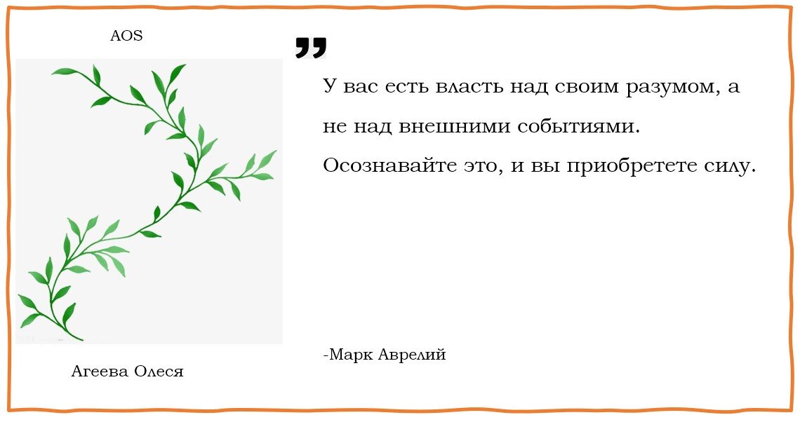 Вокруг нас много ситуаций, с которыми мы ничего не можем сделать. Не можем на них повлиять или изменить. Мы не можем быть властны над погодой, установленных правил в обществе, поведением людей… Люди могут вести себя грубо и нечестно. Вас могут обмануть или предать. Но мы никогда не бываем бессильны! Наша сила в нас самих и в том, как мы реагируем на внешние обстоятельства.