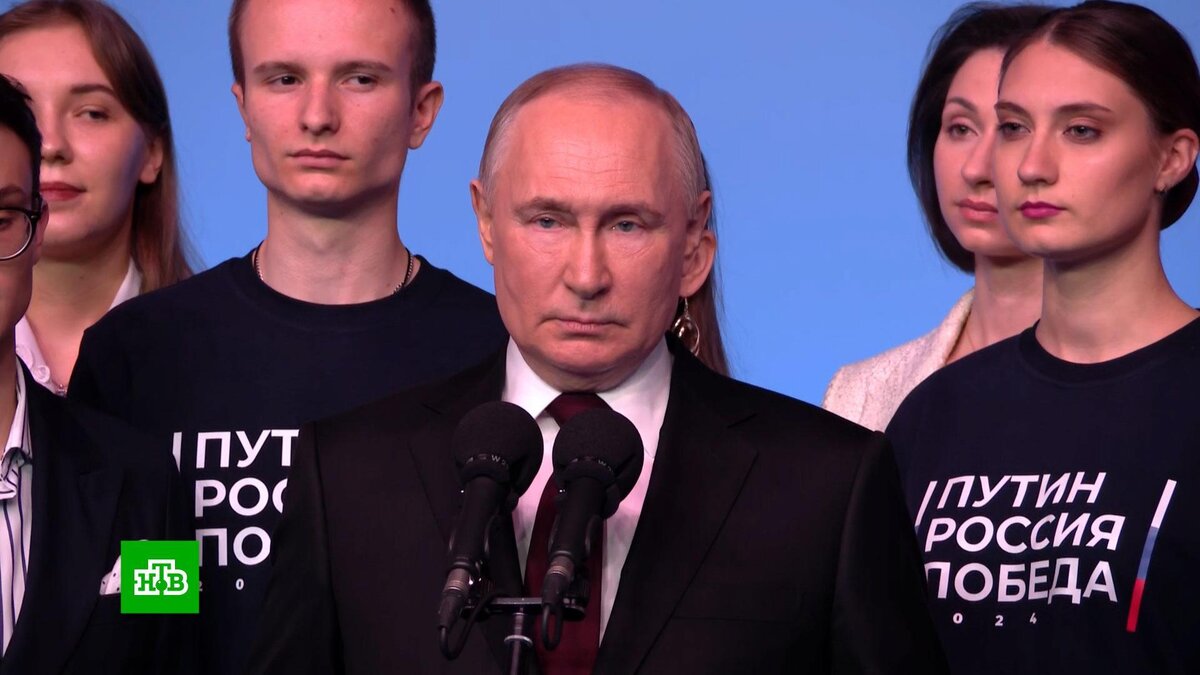 [ Смотреть видео на сайте НТВ ] Владимир Путин прибыл в свой избирательный штаб поздно вечером 17 марта: он встретился с участниками своей предвыборной кампании и ответил на вопросы журналистов. Он рассказал, что означает результат этой президентской кампании. Владимир Путин прибыл в свой предвыборный штаб за полчаса до полуночи и первым делом встретился с молодыми волонтерами, которые помогали на этих выборах. Еще до официального подведения итогов понятно, что показатели явки и голосов, отданных за Путина, исторические. Действующий глава государства поблагодарил сотрудников штаба, своих доверенных лиц и российский народ — всех, кто пришел на избирательные участки, Путин назвал соратниками и предложил задуматься, что означает это слово. Владимир Путин, президент РФ: «Это не просто воин, а ополченец. Это люди, которые вставали на защиту Отечества, думали о родине и о будущих поколениях, о нас с вами. История повторяется. Всё повторяется, и мы все соратники». Особую благодарность Владими