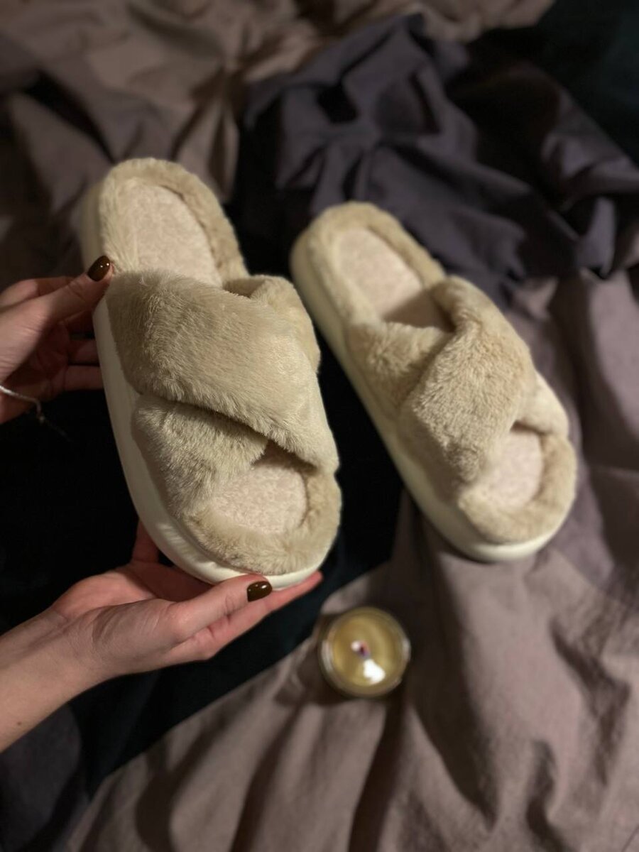 После тяжелого рабочего дня хочется скорее прибежать домой, принять душ и надеть самые удобные тапочки, именно такие я для вас и нашла. Они олицетворяют уют, спокойствие, их просто не хочется снимать. Мягкие и удобные, а самое главное, толстая подошва, она не будет трескаться и эти тапочки точно долго вам прослужат. Они не только супер удобные, но еще и очень красивые, аккуратно прошита строчка на подошве. Вообще я их заказала в подарок свекрови, она очень довольна. Себе кстати я уже тоже такие заказала только в белом цвете. Они отлично подойдут как на широкую, так и на узкую стопу. Ножка при ходьбе не потеет и не выскальзывает. Мех очень мягенький, ноге в них максимально комфортно. Размерная сетка довольно большая, они немного маломерят, на 41 размер заказала 44-45. Учитывайте при покупке. Цена тоже довольно приятная, находила похожие варианты, но они все были с тонкой подошвой, я думаю они быстро износятся, а здесь они с виду увесистые, но при этом очень легкие, ножки в них о