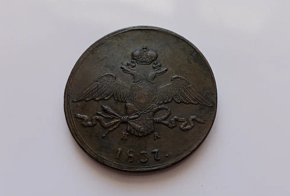 Монетка, которая всегда вызывает радость. Но тут лучше сказать не "монетка", а "монетища!", так как речь пойдет про медные 10 копеек времен Николая I. Вообще, номинал в 10 копеек редко увидишь на медных монетах. Сюда относятся редкие "барабаны", красивые "сибирские" и "масоны". Причем последние можно найти в земле с неплохой долей вероятности. В прошлой публикации я показал свой самый дорогой кольцевой пятак: А сейчас продемонстрирую самую дорогую монету в 10 копеек, которая у меня есть. Вообще, монета 10 копеек периода 1830-1839 не является большой невидалью. Если она лежит в земле, то обязательно будет обнаружена, так как обладает большой площадью и массой. Другое дело, что редкий экземпляр будет иметь приличный вид, чаще всего - орел хорошо подзатерт из-за своего "выдающегося" вида. В моих закромах все монеты в 10 копеек имеют буквы ЕМ. Опять же играет фактор региональности. Но не стоит исключать, что может попасться и монета с буквами СМ (с Сузуна), которая обладает большей ред