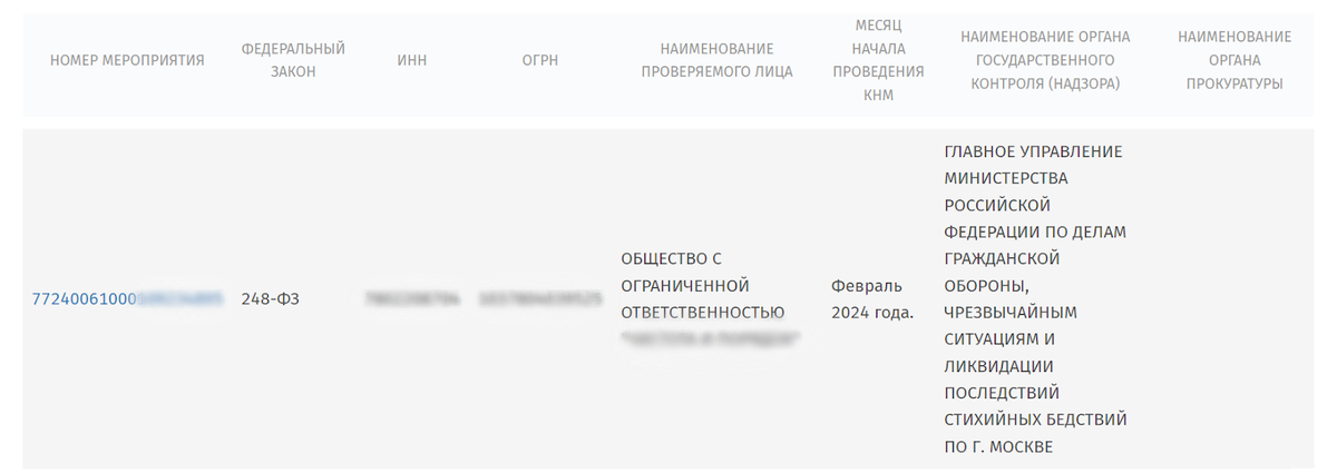 Генеральная прокуратура РФ курирует сайт, на котором доступны данные из двух информационных систем: Единого реестра контрольных (надзорных) мероприятий и Единого реестра проверок. Чтобы получить сведения о проверке, пользователю нужно ввести в строку поиска номер КНМ или дату начала проведения мероприятия. Также доступен поиск по наименованию, ИНН и ОГРН компании.
