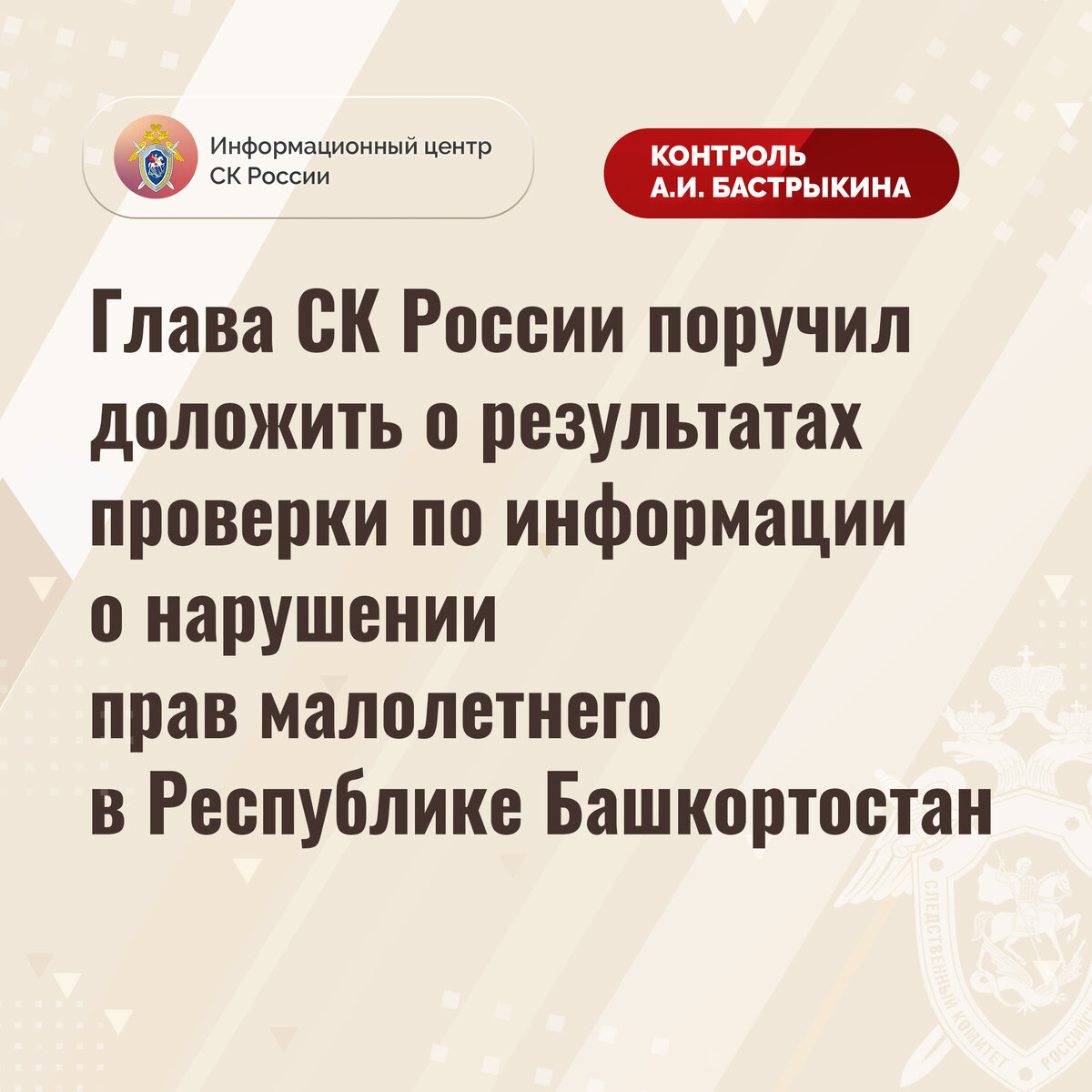 Глава СК России поручил доложить о результатах проверки по информации о нарушении прав малолетнего в Республике Башкортостан