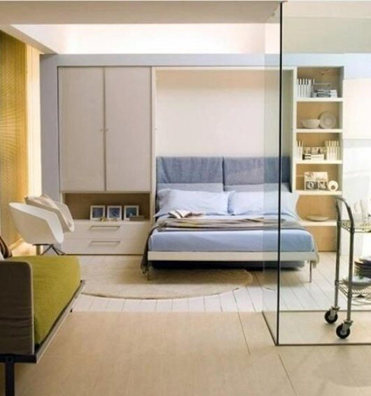 Совмещаем спальню и гостиную с помощью новых мебельных решений в интерьере