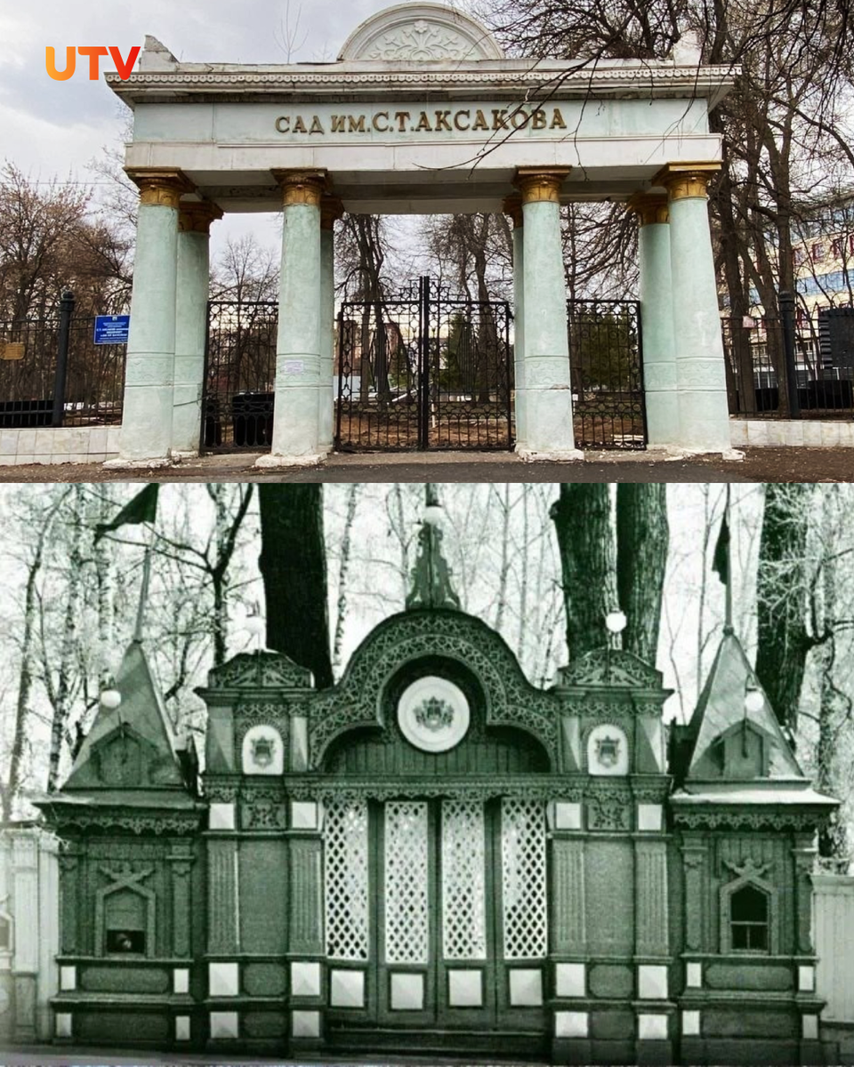 Взгляните, как за несколько десятилетий изменились входные группы в уфимские парки. Сад имени Аксакова основан в далеком 1833 году и на протяжении своей истории назывался также Видинеевским и парком Луначарского. До 1956 года главный вход в него украшали резные деревянные ворота. Затем на их месте появилась монументальная арка с колоннами. Во время реконструкции сада в 2023 году эту арку признали аварийной и заменили на точную копию. Красивая арка с колоннами и гипсовой лепниной была также в Ушаковском парке (ныне парк имени Ленина) и располагалась на входе в нынешнюю аллею городской скульптуры ArtTerria. А сад имени Салавата Юлаева (ранее - Случевской парк) и сейчас украшают резные кованые ворота. Только, увы, разглядеть их красоту снаружи сложно, так как теперь их загораживают ряды припаркованных автомобилей.