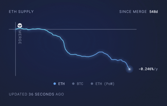 Оборотное предложение Ethereum обновило минимум после Слияния