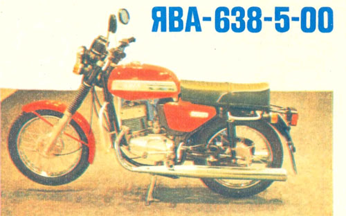 Со второй половины 1984 года в СССР стали поступать чехословацкие мотоциклы Jawa 638-5-00. Это модель переходная между хорошо известной машиной Ява-634 и новой конструкцией Ява-638-0-00 («За рулем», 1984, №10). Новые двигатель, электрооборудование, передняя вилка — вот что прежде всего отличает модель 638-5-00.